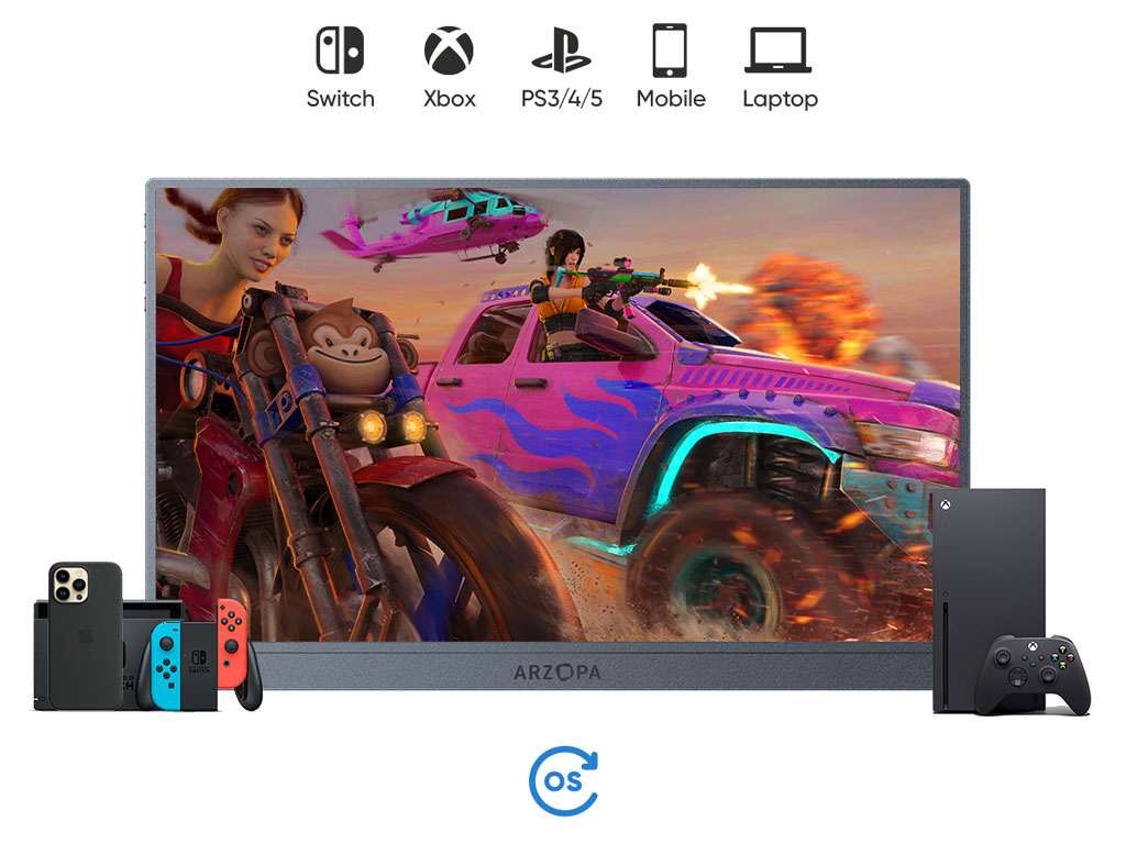 Arzopa Z1FC prenosni monitor ponuja 16-palčni FullHD (1920 × 1080) IPS zaslon, ki prinaša ostro sliko v prenosnem formatu. Primeren je za delo, urejanje dokumentov, ogled videoposnetkov ali igranje iger kjerkoli.