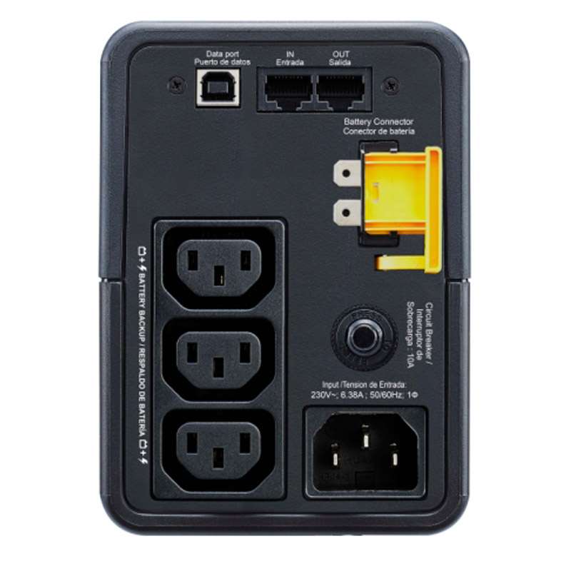 APC Back-UPS BX500MI brezprekinitveno napajanje nudi premium zaščito za visoko zmogljive računalnike in elektronsko opremo. Zvočna opozorila omogočajo obveščanje o spreminjanju električne energije in pogojih napajanja UPS-a. Omogočeni so periodični samopreizkusi baterije, ki zagotavljajo zgodnje odkrivanje napake baterije, ki jo je treba zamenjati. Obvestilo o okvari baterije zagotavlja zgodnje opozorilo o napakah na baterijah, kar omogoča pravočasno preventivno vzdrževanje. Zamenjava baterije brez orodja omogoča hitro zamenjavo baterije. Brezprekinitveno napajanje rezervira napajalno zmogljivost in čas delovanja za povezano opremo, ki potrebuje rezervno UPS baterijo, obenem pa nudi zaščito pred prenapetostjo za manj kritično opremo. Zagotavlja zaščito priključene opreme pred prenapetostmi električne energije na podatkovnih linijah.