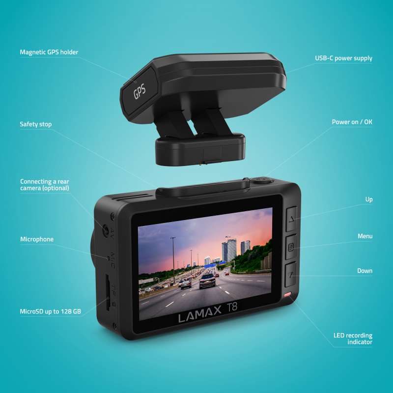 Zadnja kamera je združljiva z Lamax T10 4K GPS (z radarskim poročanjem)