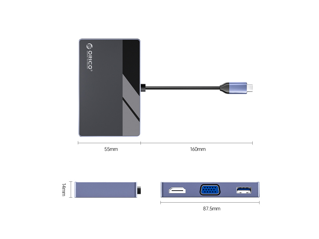 - Priključna postaja USB-C, 7 v 1, 3x USB-A, HDMI, VGA, PD 100W, 3,5 mm audio, ORICO DM-7P