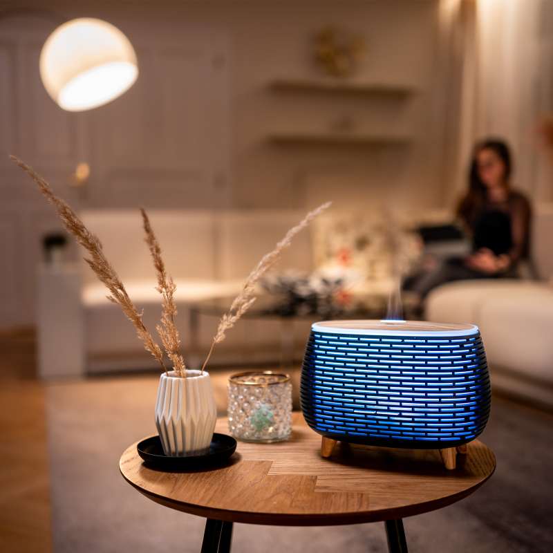 Kakovost zraka, ki ga dihamo, ima velik vpliv na naše zdravje in splošno počutje. Izboljšamo ga lahko z rednim prezračevanjem, čistilci zraka, sobnimi rastlinami, pa tudi difuzorji. Eterična olja, ki se uporabljajo v difuzorjih, pomagajo pomiriti, sprostiti um in izboljšati dihanje. Aromaterapija je odličen pomočnik pri preprečevanju bolezni ter celostni negi telesa in duha. Uporaba difuzorjev skupaj z rednim čiščenjem služi tudi kot preprečevanje neprijetnih vonjav.