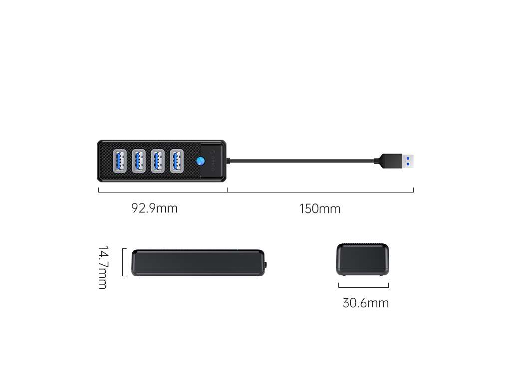 - USB hub s 4 vhodi, USB 3.0, 0.15m, črn, ORICO PW4U-U3-015
